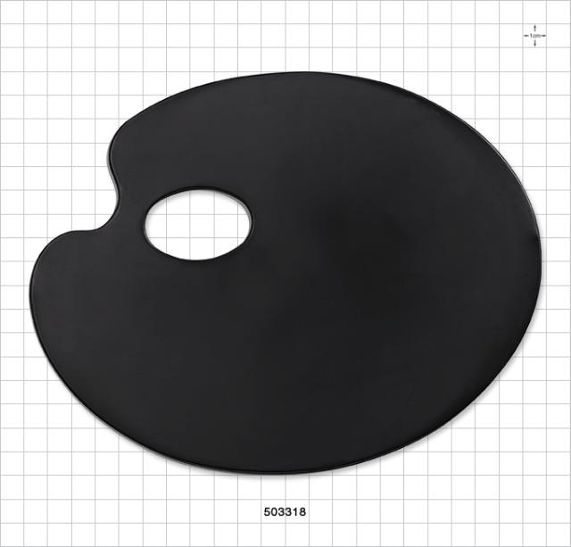 This black, reusable artist mixing palette made of durable polystyrene offers a sanitary working surface for the professional makeup artist. The thumb hole provides a comfortable grip while mixing, blending and applying cosmetics.