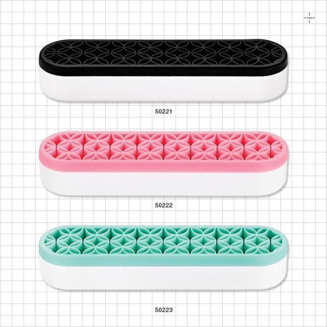 This beauty tool organizer is perfect for displaying makeup brushes, lipsticks, tweezers and more. The flexible silicone allows items of almost any size to be stored neatly and upright for easy access.