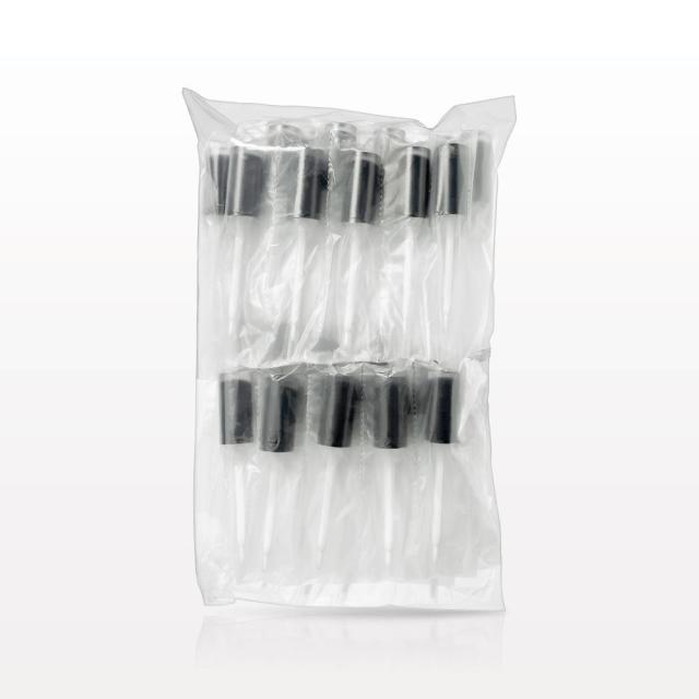 Precisely apply lip gloss or other liquid makeup, gels or serums with this nylon brush tip applicator that comes with an attached black cap and wiper. The cap is designed to have a clear section at the very top. Fits our 7 ml Clear Vial (Part # 29996).