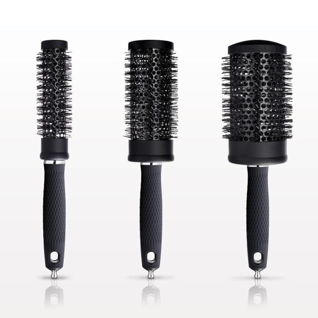 These ceramic thermal round brushes are must-haves for any professional styling kit. Use this brush to achieve perfect blowouts with volume, shape, and smoothness. These brushes feature a ceramic-coated barrel that heats up during use, allowing for more efficient and even heat distribution. They also feature a removable sectioning pik which helps easily part or section hair and an anti-slip grip for added comfort. Available in three sizes.