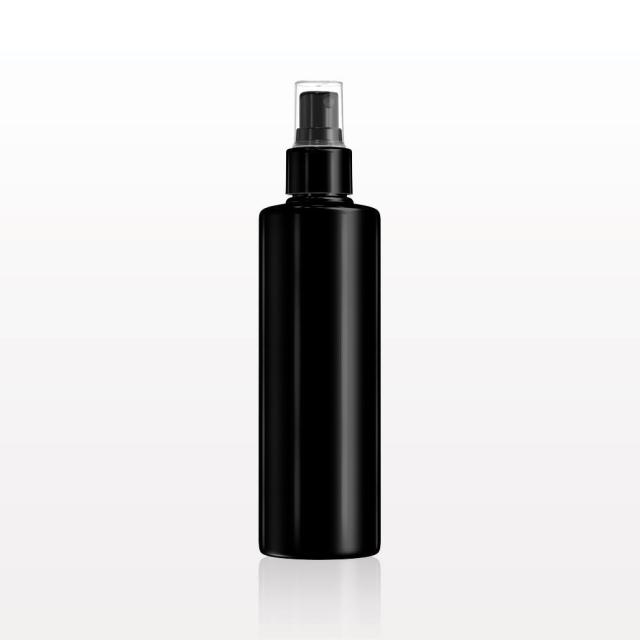 Cylinder Bottle, Black with Fine Mist Sprayer and Overcap, Clear