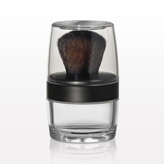 This nylon hair kabuki brush with matte black base screws on to a 20 gram clear jar (Part # 10057) which is ideal for packaging loose powder formulations. The clear overcap comes with a convenient small mirror on top. Purchase the corresponding sifter (Part # 10056) to help reduce product waste. Fully assembled jar and cap measures 1.85 inch Diameter x 2.84 inch (47 mm x 72 mm).