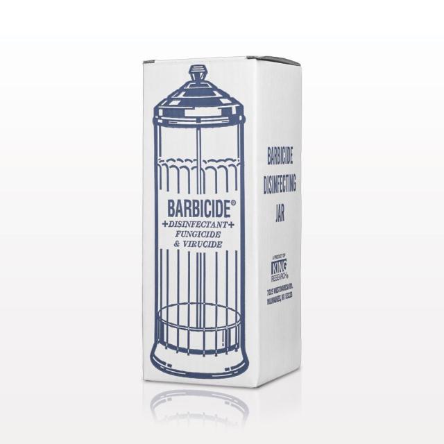 This empty large disinfectant jar by Barbicide® is a great addition to any work station as it features a stainless steel self-draining basket and non-slip rubber ring base to help sanitize and disinfect tools such as shears, combs and brushes. Barbicide® Disinfectant Concentrate (Part #’s 91294 & 91293) sold separately.