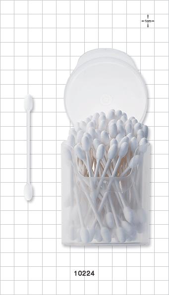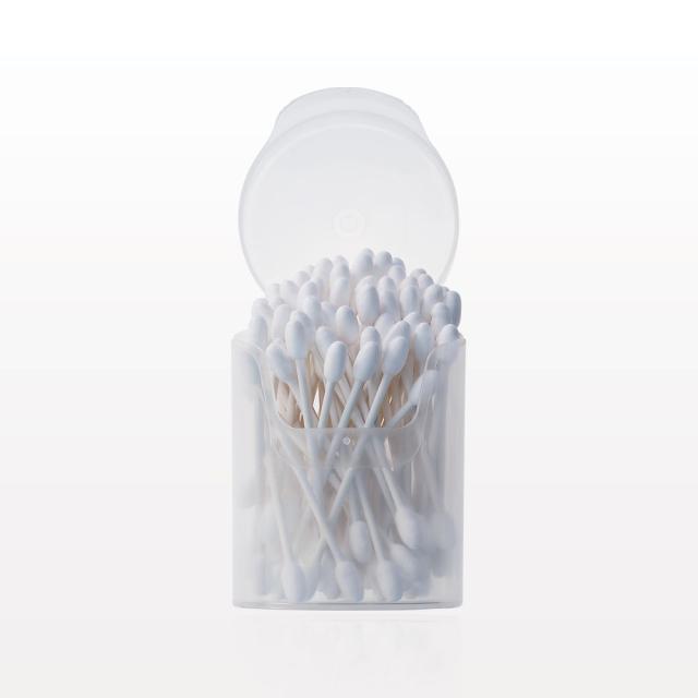 These round/round tip luxury cotton swabs have larger heads to cover more surface areas for application or cleaning. Each 3 inch swab will stay clean and ready for your next application in the cylinder with flip top lid. The white paper shaft is biodegradable and the tightly wound heads provide smooth application. Safety Information: Do not insert swab into ear canal. Entering the ear canal could cause injury. If used to clean ears, stroke swab gently around the outer surface of the ear only. Keep out of reach of children.