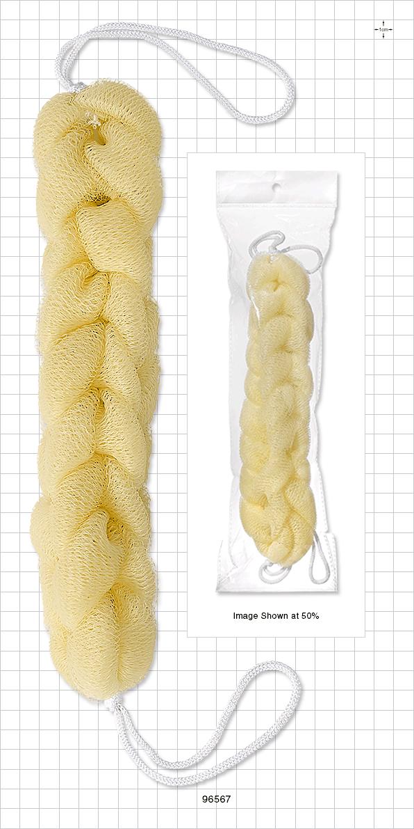 This mesh bath belt gently exfoliates those hard-to-reach areas on your back. The easy-to-grasp rope loops allow the mesh fiber of the belt to contour to your body giving you more control. Easy to wash and dries quickly. Each mesh bath belt is individually wrapped in a poly bag with retail hang tab making it perfect for resale.