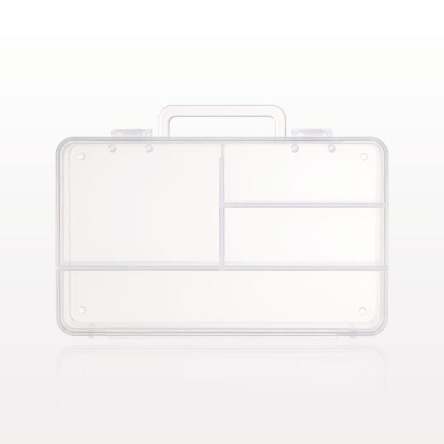 Ready to Fill! This mini beauty supply organizer is perfect for storing your disposable cosmetic applicators and hair accessories such as bobby pins, hair pins, duck bill clips and hair bands. The supplies lay nicely inside this polypropylene box with compartments. The lid seals with two clasps to keep items secure while traveling. The extra small size of this organizer makes it ideal to fit into your kit or store on top of a counter. Can also be used to store nail art supplies and other craft supplies.