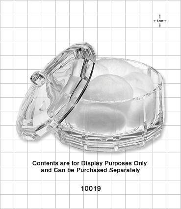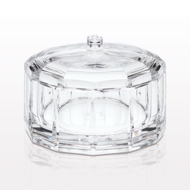Our petite luxury faceted clear acrylic cylinder is suitable for holding sponges, cotton balls and other disposable supplies at retail counters. The removable lid with molded knob allows for easy access to the contents of this attractive supply container. Use this item to organize beauty workspaces, store rings or other jewelry. It comes individually boxed and is great for resale.