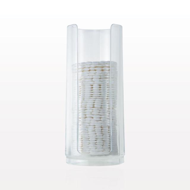 Our round acrylic pad holder has an open lid for quick and easy access to cotton round pads or gauze. Contents are for display purposes only and can be purchased separately.