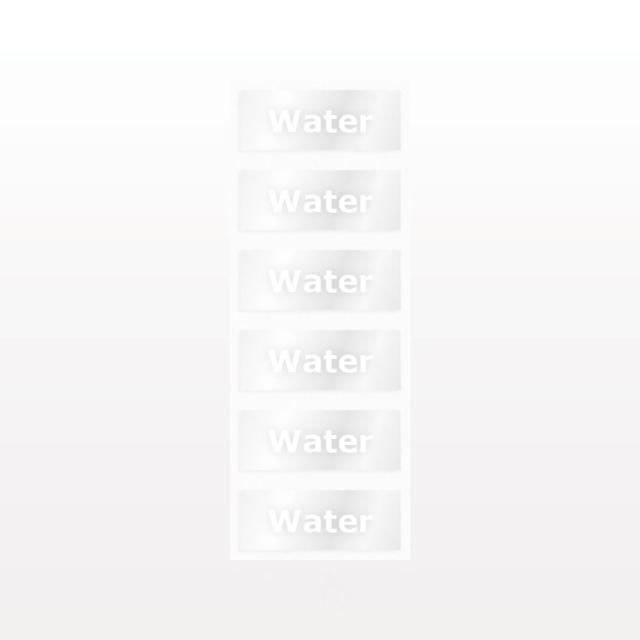 Identify bottles containing water with this clear rectangular label that visibly says " Water" in white lettering.